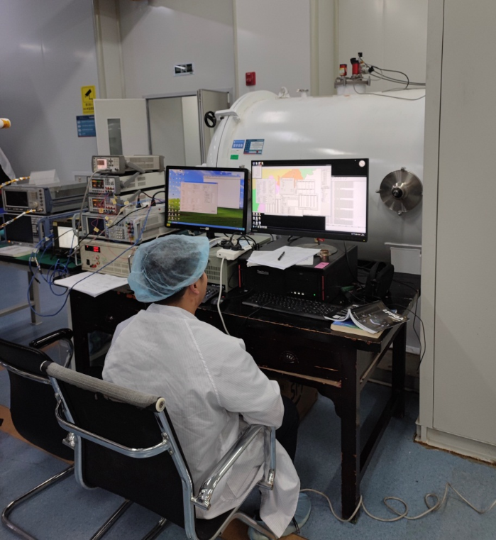7月17日凌晨三點,西光廠內(nèi)一片寂靜,路燈似乎也熱到發(fā)著微弱的光,偶爾聽得到一聲兩聲狗的吠叫。此時,熱真空實驗室依然燈火通明,伴隨著機器聲轟鳴作響,王玨和姚佳豪喝完第二杯咖啡,“掰開”上下眼皮,繼續(xù)守在設(shè)備前,緊緊盯著設(shè)備的功能和性能指標。“指標完全符合要求”!最后一個循環(huán)結(jié)束,王玨激動地說道。他和姚佳豪通宵達旦地開展大量試驗驗證, 經(jīng)過4個白天和黑夜,最終順利完成了某項目熱真空試驗。