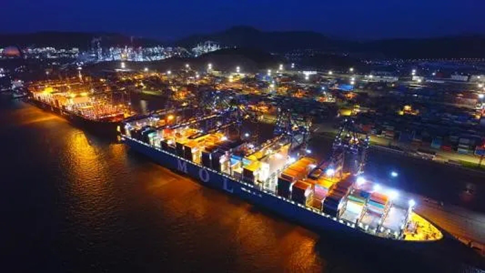 在某國內(nèi)大型物流港口,無人作業(yè)自動引導(dǎo)車車循環(huán)往來,超車換道、裝箱卸貨、多車協(xié)同等作業(yè)流暢鏈接……